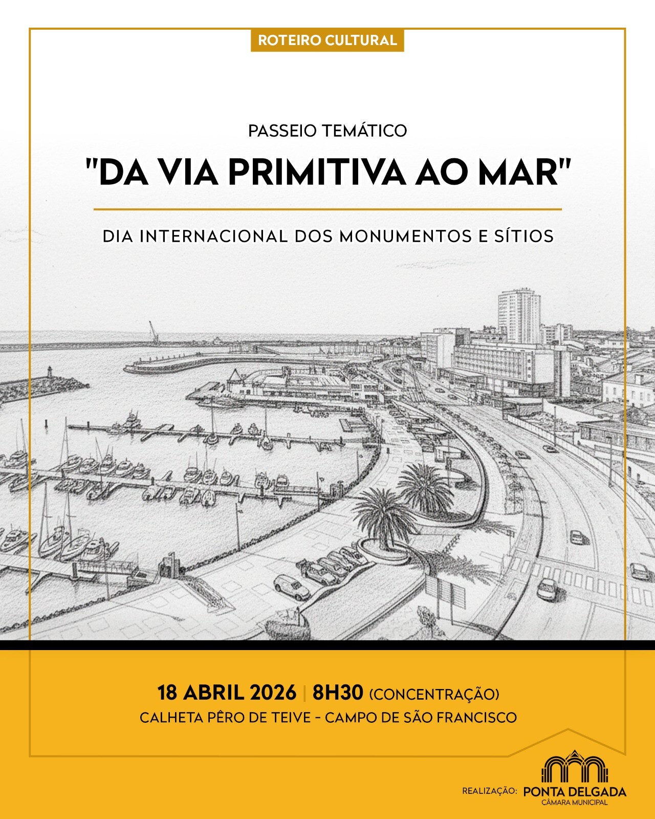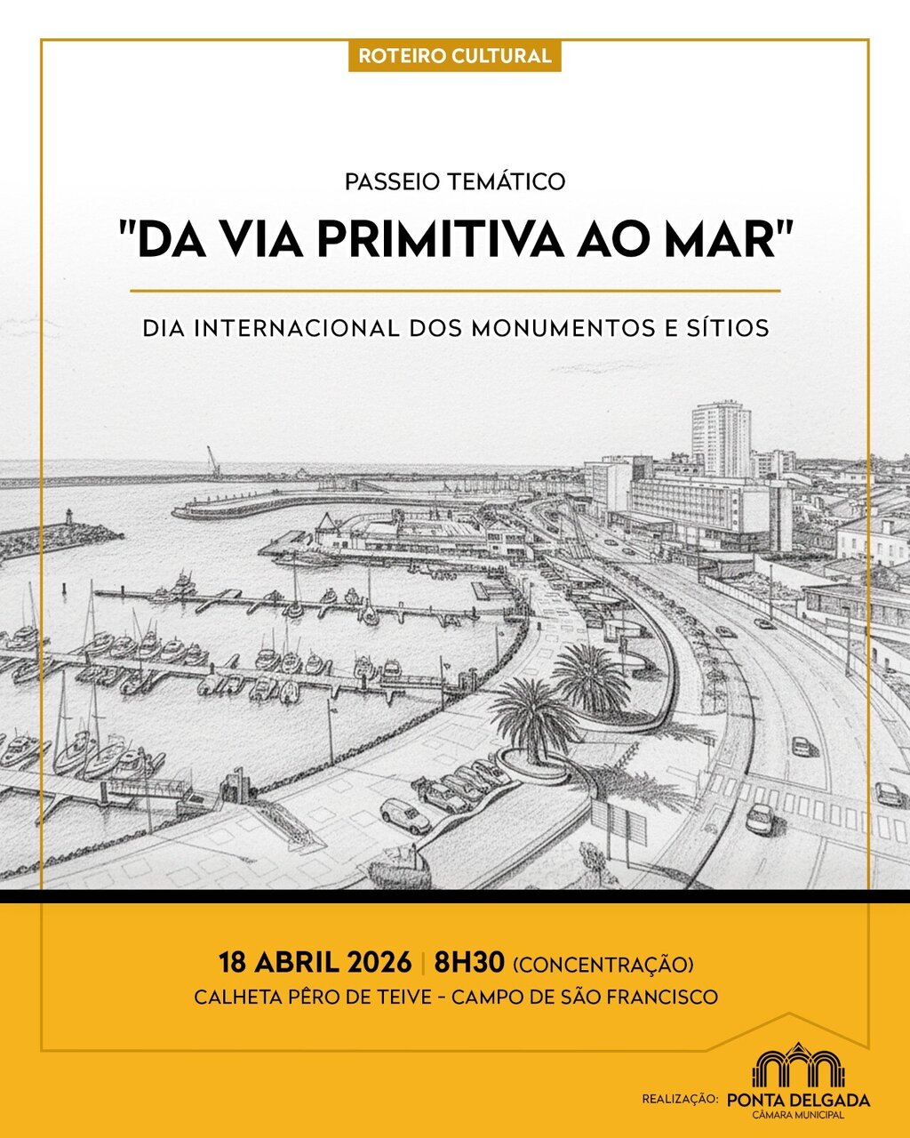 A Câmara Municipal de Ponta Delgada vai assinalar o Dia Internacional dos Monumentos e Sítios, no próximo dia 18 de abril, com um roteiro cultural de participação gratuita, denominado “Da Via Primitiva ao Mar”.