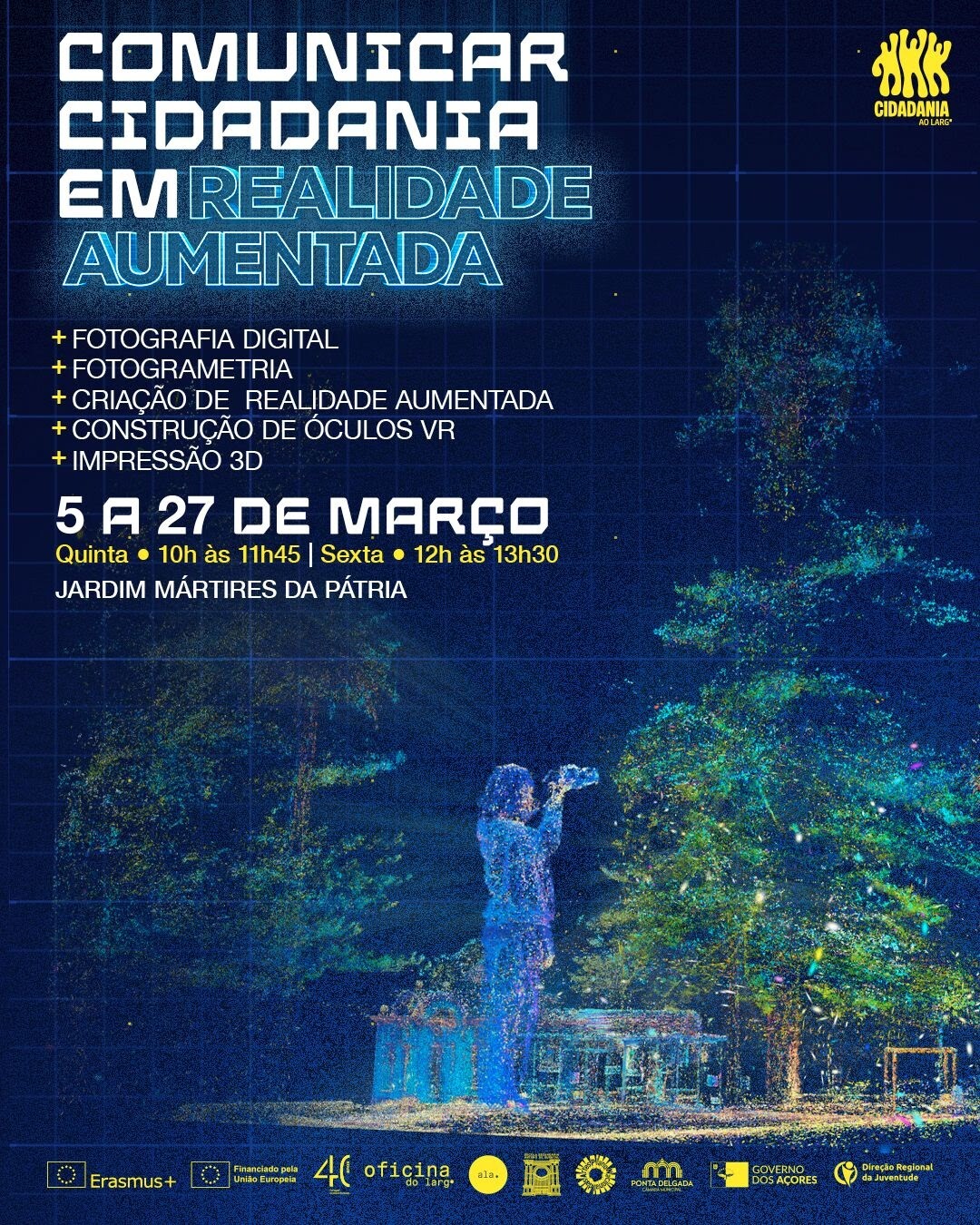 Em tempos de grandes mudanças a nível mundial, a Oficina Comunicar Cidadania em Realidade Aumentada quer apostar na pesquisa em jornais nacionais e internacionais, na discussão aberta, construtiva e necessária de questões atuais, com o objetivo de preparar e promover uma nova cidadania - mais atenta e interventiva - e fortalecer opiniões atuais e importantes para o crescimento dos cidadãos. Todo este processo será depois partilhado com a comunidade, através da criação de Arte em Realidade Aumentada, Multimédia e Escultura.