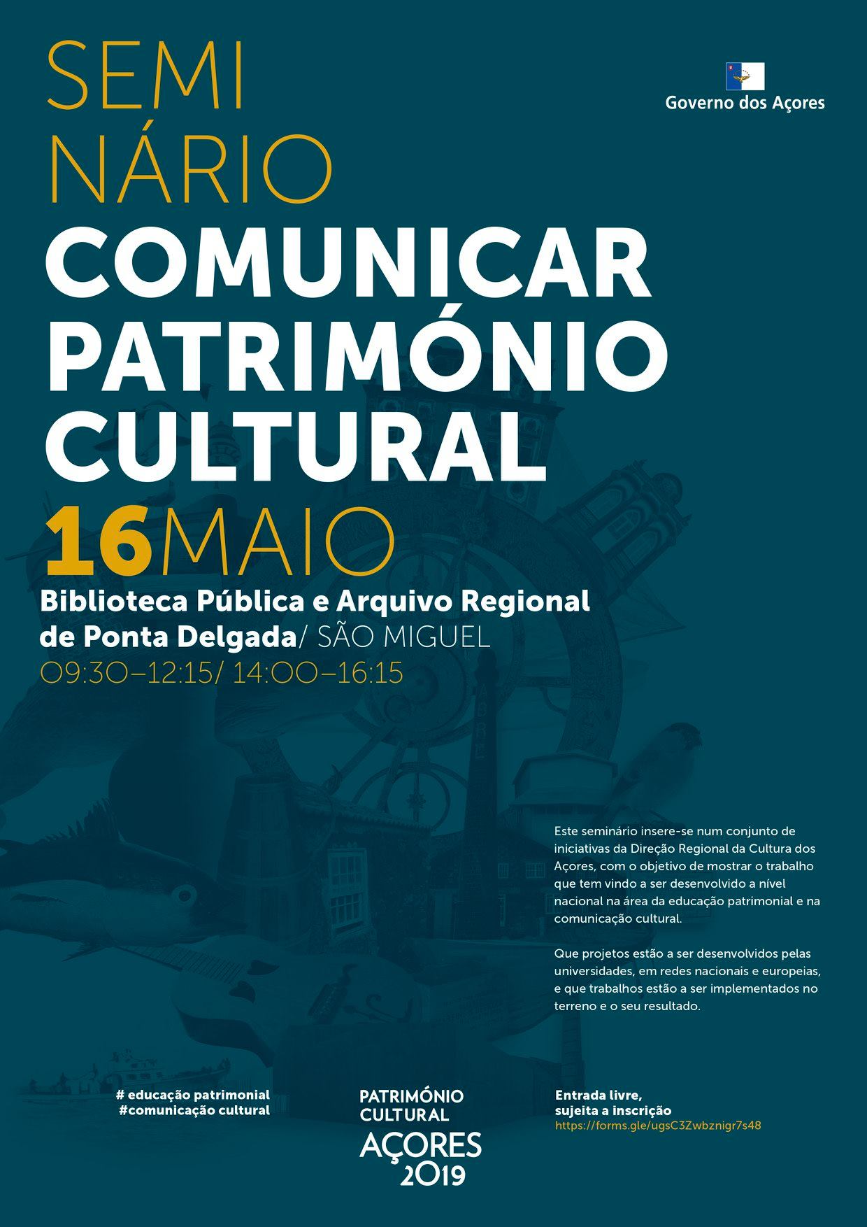 A Direção Regional da Cultura promove o Seminário "Comunicar Património Cultural" no dia 16 de maio de 2019 na Biblioteca Pública e Arquivo Regional de Ponta Delgada.