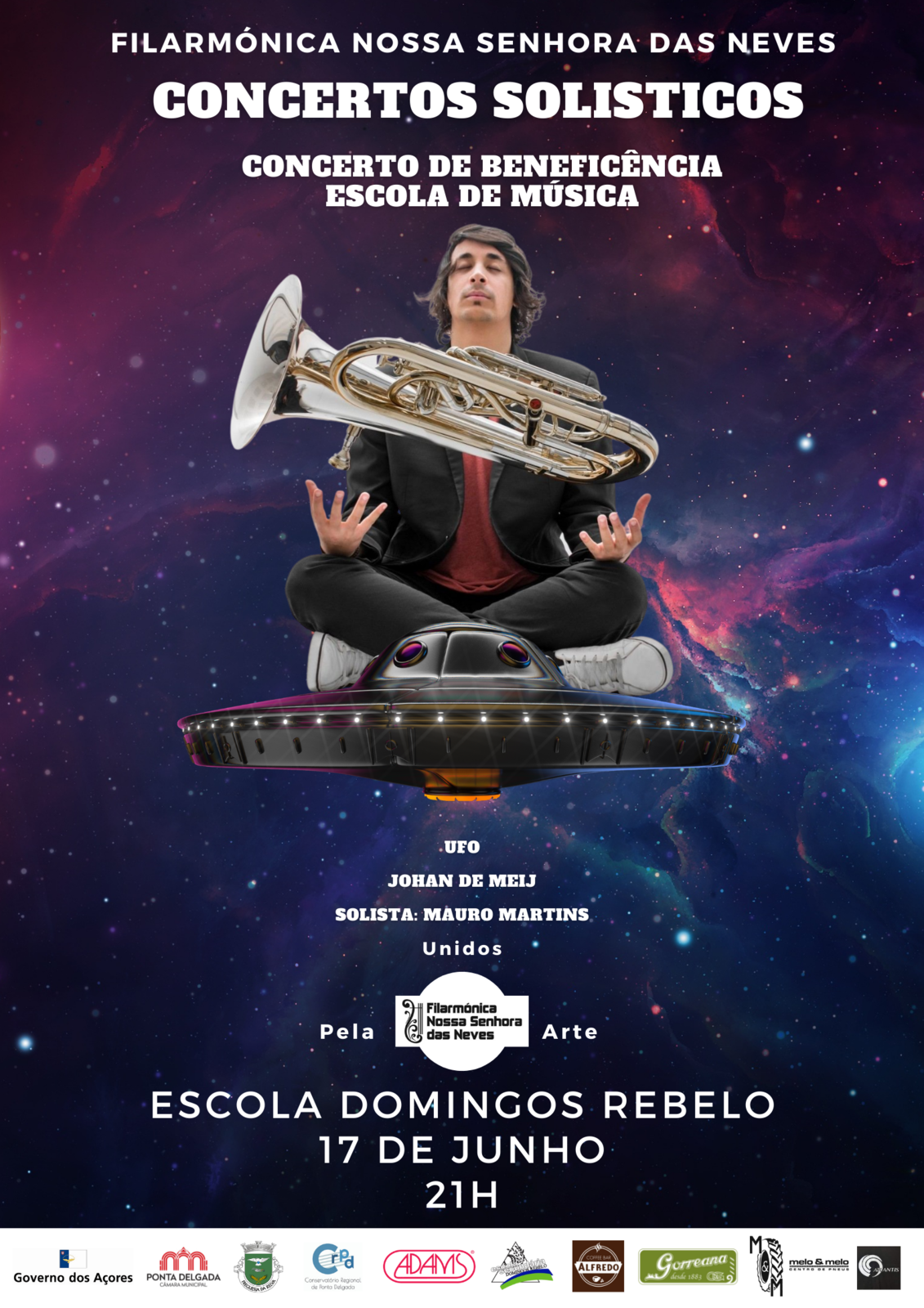 Será um concerto certamente do outro mundo, pela qualidade inequívoca do solista mundialmente famoso, Mauro Martins, Intérprete de Euphonium, da orquestra e das obras apresentadas.