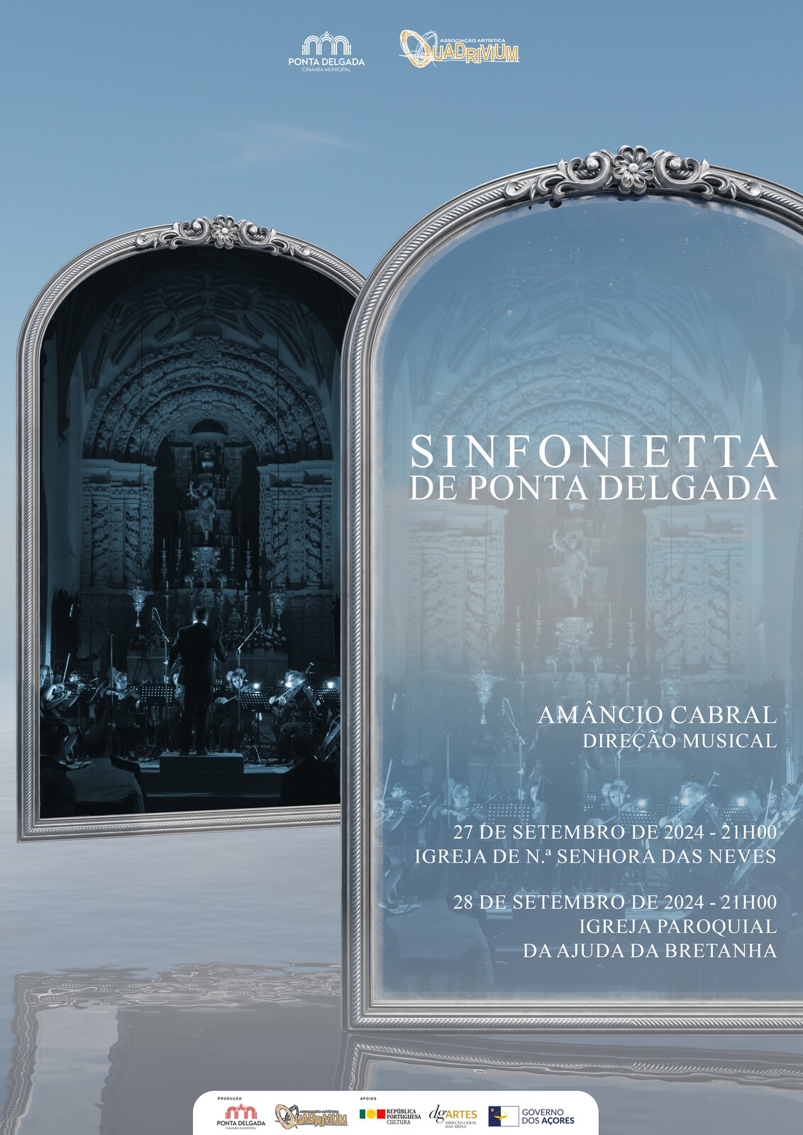 A Sinfonietta de Ponra Delgada, da Associação Artística Quadrivium, irá atuar no dia 27 do corrente mês, às 21h00, na Igreja N.ª Sr.ª das Neves, na Relva, e no dia 28, também de setembro, às 21h00, na Igreja Paroquial da Ajuda da Bretanha.