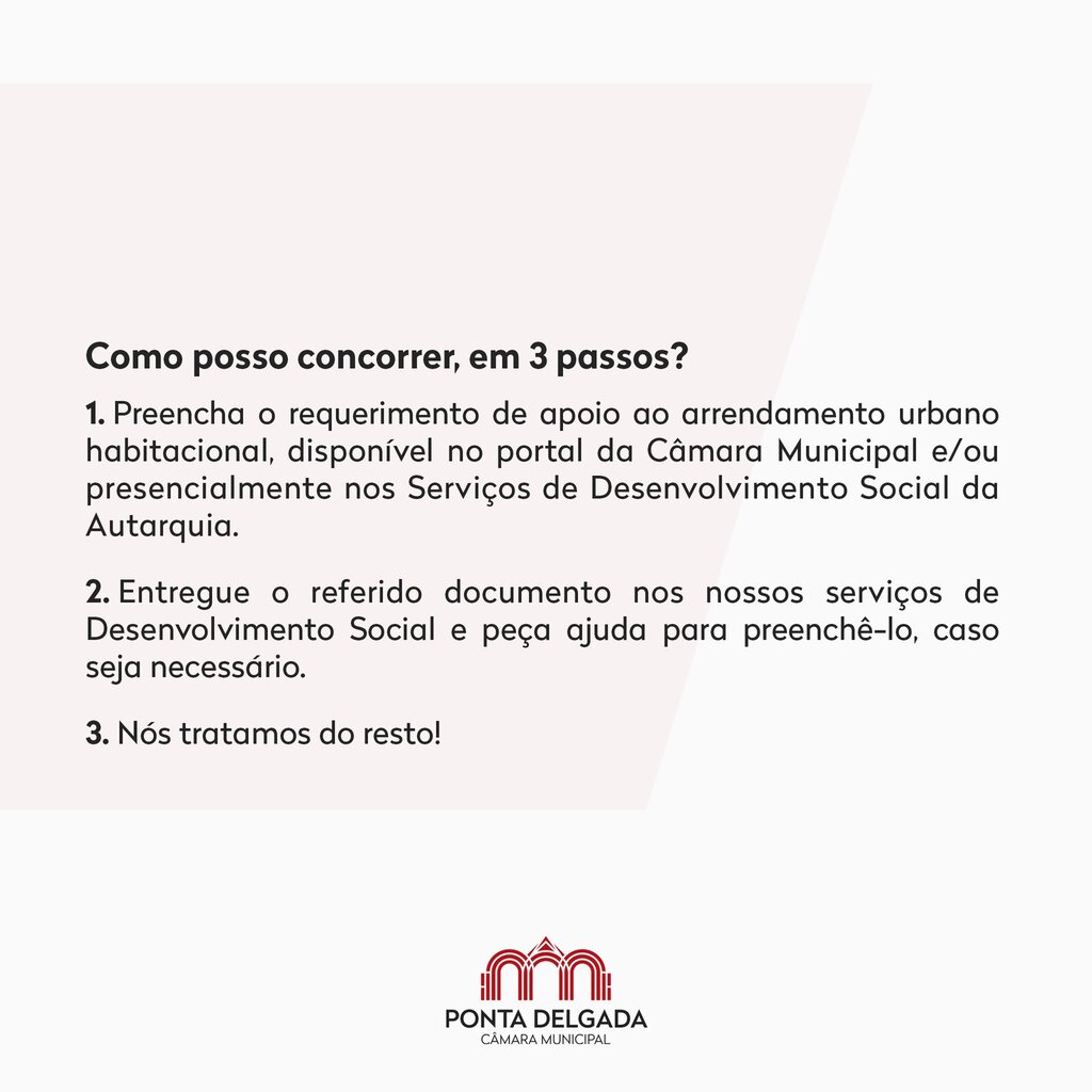 Este é um programa que visa a atribuição de um apoio económico ao arrendamento urbano para fins habitacionais, a agregados familiares residentes no Concelho de Ponta Delgada, há mais de 6 meses.