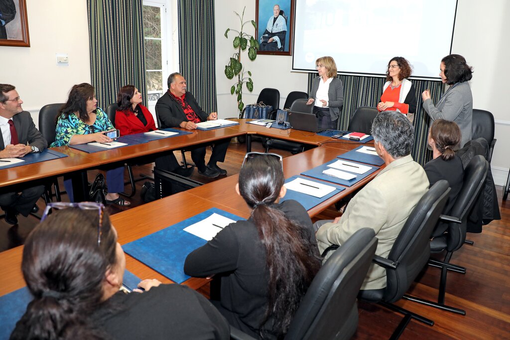 Susana Mira Leal deu as boas vindas à comitiva à Universidade dos Açores e Graça Queirós fez uma breve resenha sobre os três polos e a investigação científica que é realizada na Academia açoriana, o que deixou a comitiva havaiana surpreendida pela positiva.