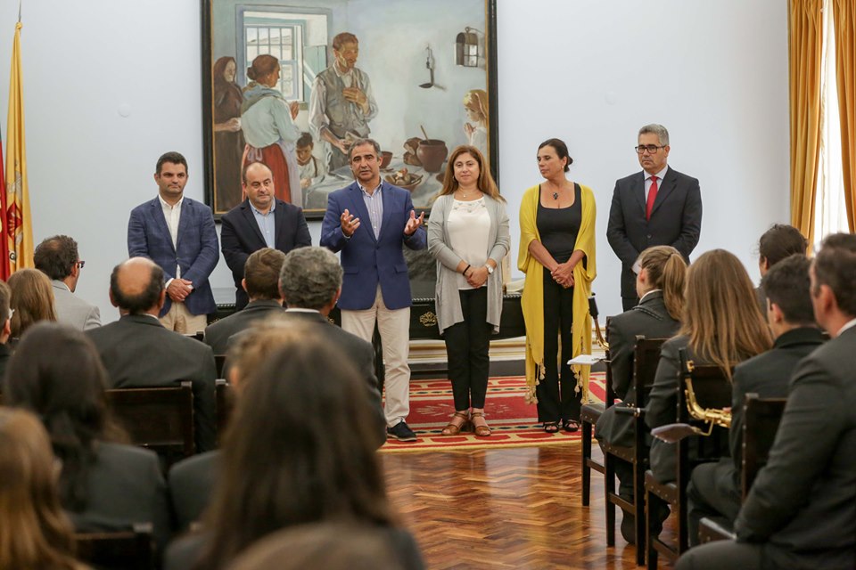 O Presidente da Câmara Municipal de Ponta Delgada, José Manuel Bolieiro, recebeu esta tarde em audiência para apresentação de cumprimentos os membros da direção e os músicos da Sociedade Recreativa e Musical Bingre Canelense, do concelho de Estarreja, distrito de Aveiro.