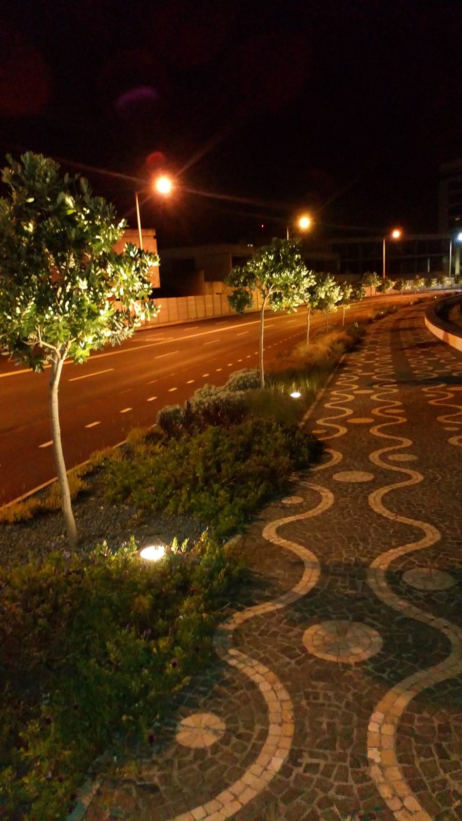 Sendo assim, foi colocada iluminação cénica, constituída por faixas de fitas LED descontínuas, no murete, desde o Clube Naval de Ponta Delgada até à Avenida do Mar. Foram também colocados projetores na base das árvores desde o Hotel Marina até ao Clube Naval.