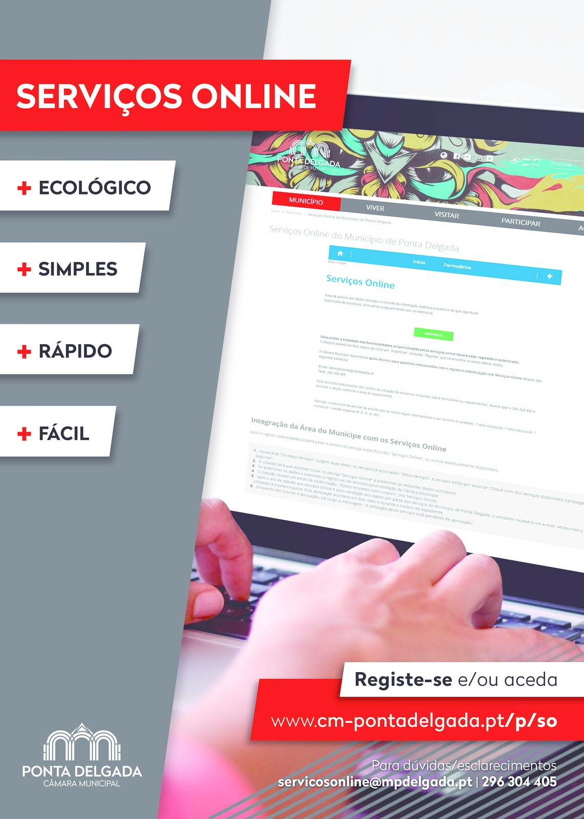 Acrescenta-se ainda que existe um nº de Telefone 296304405 de Apoio aos Serviços Online, e email servicosonline@mpdelgada.pt.