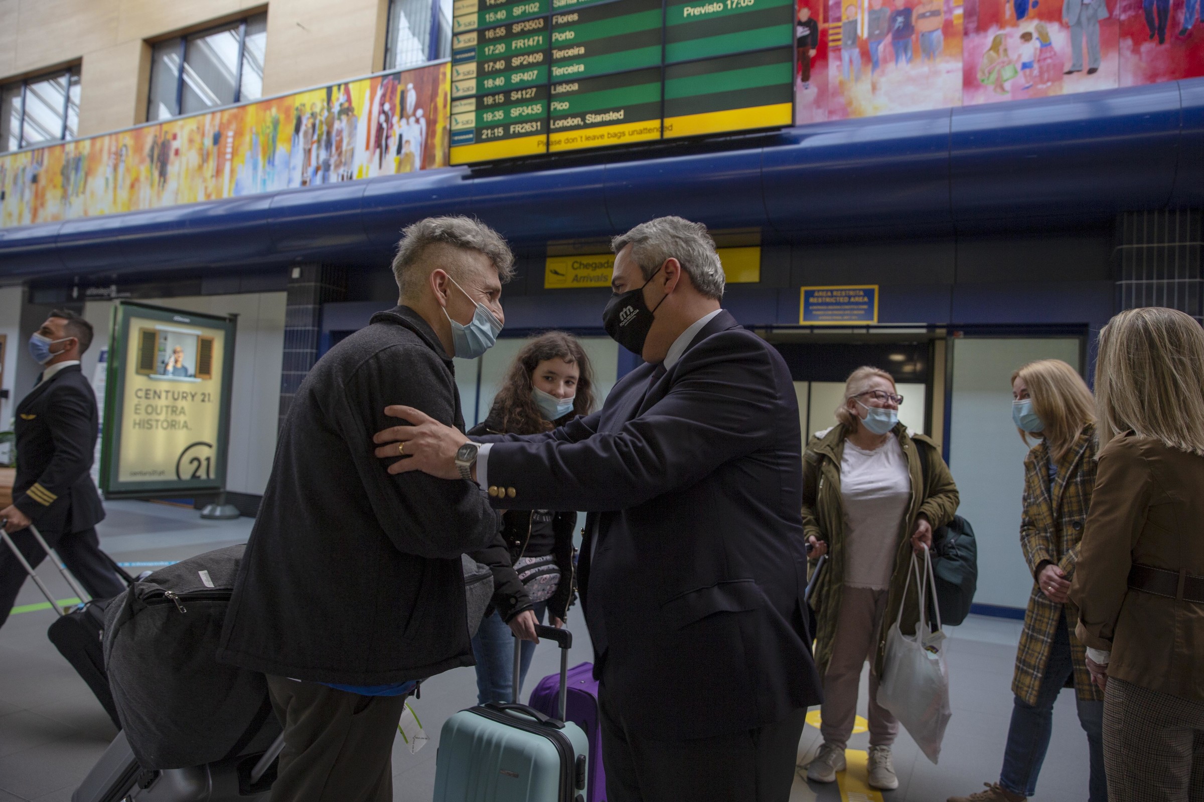 A primeira família de refugiados da Ucrânia chegou esta tarde ao aeroporto de Ponta Delgada e foi acolhida pelo Presidente da Câmara Municipal, Pedro Nascimento Cabral, Vereadora do Desenvolvimento Social, Cristina Canto Tavares, e Chefe de Divisão, Margarida Pais.