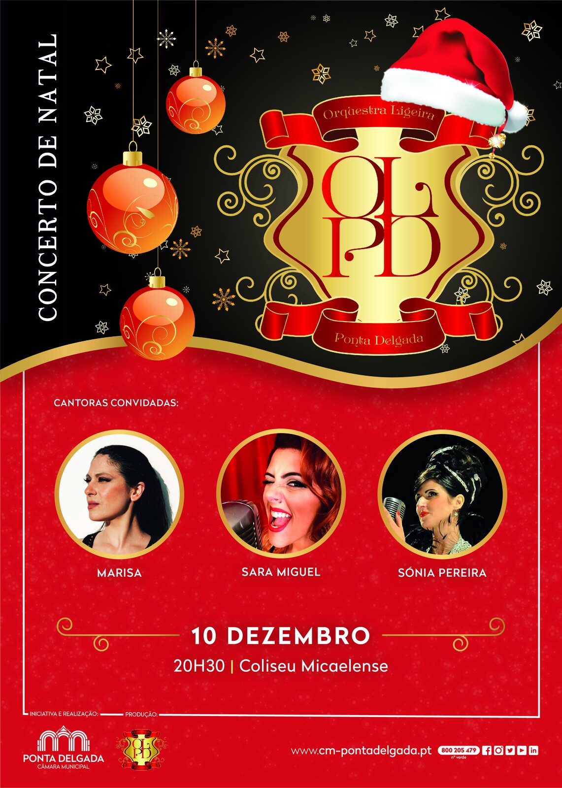 No próximo dia 10 de dezembro, pelas 20h30, a Orquestra Ligeira de Ponta Delgada leva a efeito um concerto especial de Natal que vai também fazer subir ao palco do Coliseu Micaelense as cantoras Marisa, Sara Miguel e Sónia Pereira.