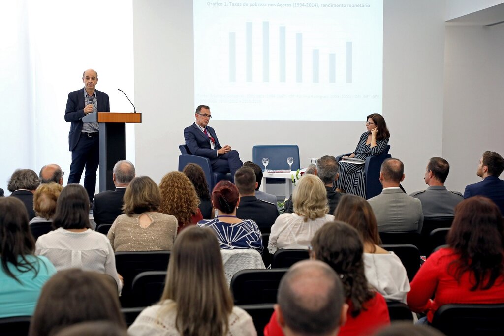Em cima da mesa, estiveram temas como "A pobreza nos Açores: Contexto, desafios e o caso dos sem abrigo", por Fernando Diogo, Diretor do Mestrado em Políticas Sociais e Dinâmicas Regionais da Faculdade de Ciências Sociais e Humanas da Universidade dos Açores; "A arte participativa: Uma ferramenta no combate à pobreza e exclusão social", por Eduardo Marques, Diretor do Curso de Serviço Social da Faculdade de Ciências Sociais e Humanas, também da Uaç; "Projetos de Housing First no Canadá e Estados Unidos: Implementação, avaliação e disseminação", por Geoffrey Nelson, da Wilfrid Laurier University, no Canadá; "Housing First no contexto Europeu: Apresentação dos resultados do projeto Home_EU/Horizonte 2020", por José Ornelas, do ISPA - Instituto Universitário de Portugal.