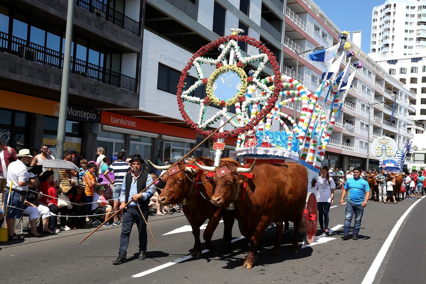 O cortejo, organizado pelas Juntas e Mordomias das 24 freguesias concelho de Ponta Delgada, integra 26 carros de bois, 58 carros alegóricos, 19 folias e quatro agrupamentos musicais.