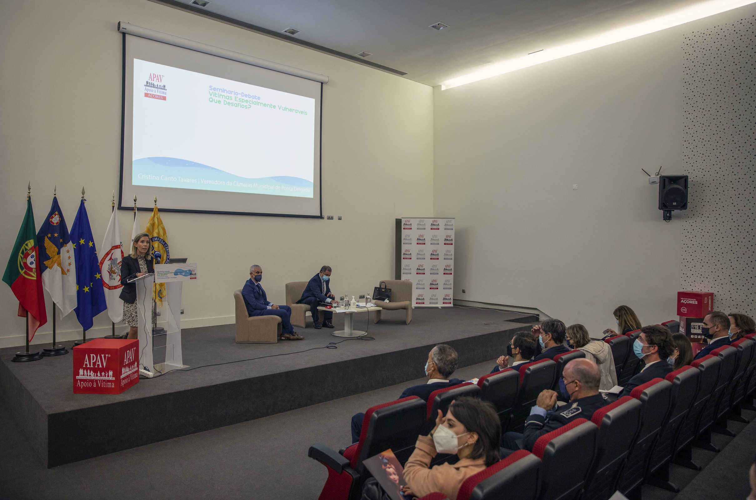 Cristina Canto Tavares enalteceu o trabalho desenvolvido pela APAV, na pessoa do seu Presidente, João Lázaro, e da Gestora nos Açores Sílvia Branco, no âmbito do combate à violência e reiterou a disponibilidade do Município de Ponta Delgada para colaborar com a associação, dentro das competências que lhe são atribuídas.