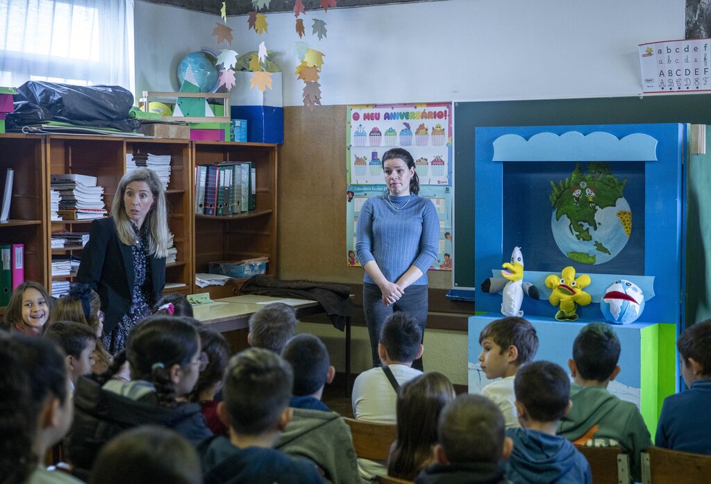 A vereadora Cristina do Canto Tavares esteve, esta segunda-feira, na EB1/JI de São Roque para participar no projeto educativo municipal “Vamos ajudar a salvar o Planeta”.