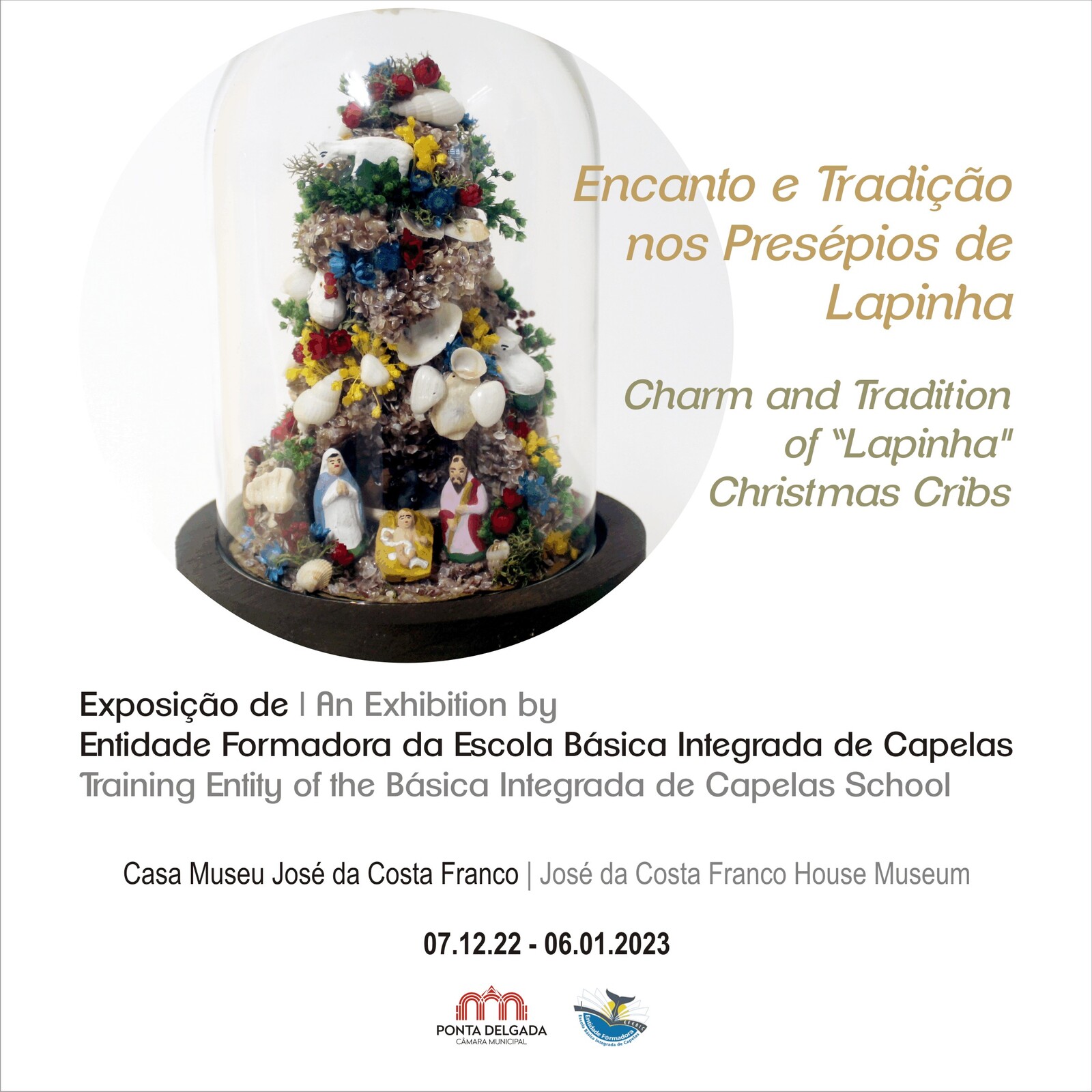 A mostra é constituída por 22 presépios elaborados na formação “Construção de presépios de Lapinha”, entre 2021 e 2022, e dinamizada pelo formador António Barreto, um artesão reconhecido ao nível nacional e internacional.