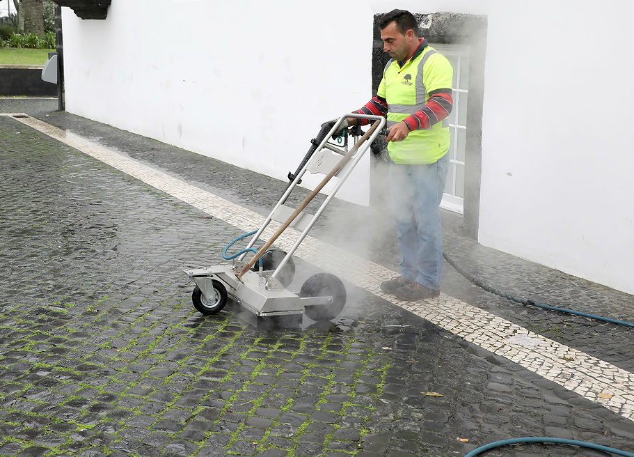 O equipamento, que a Câmara Municipal de Ponta Delgada tem utilizado desde dezembro de 2018, é considerado como um dos mais apropriados para a eliminação de infestantes na calçada e muitos outros pavimentos.