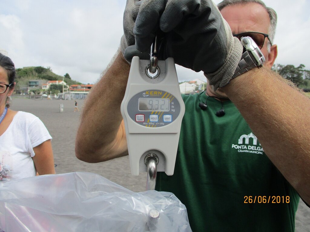 Durante duas horas, foi feita a recolha de 9,32 kg de resíduos, tendo sido elaborado o cartaz com os 10 resíduos mais encontrados , respetivamente beatas de cigarros, fragmentos de plástico, paus de chupa chupa, tampas de plástico, palhinhas, discos K3, cordel, latas de bebida, sacos de plástico e paus de madeira.