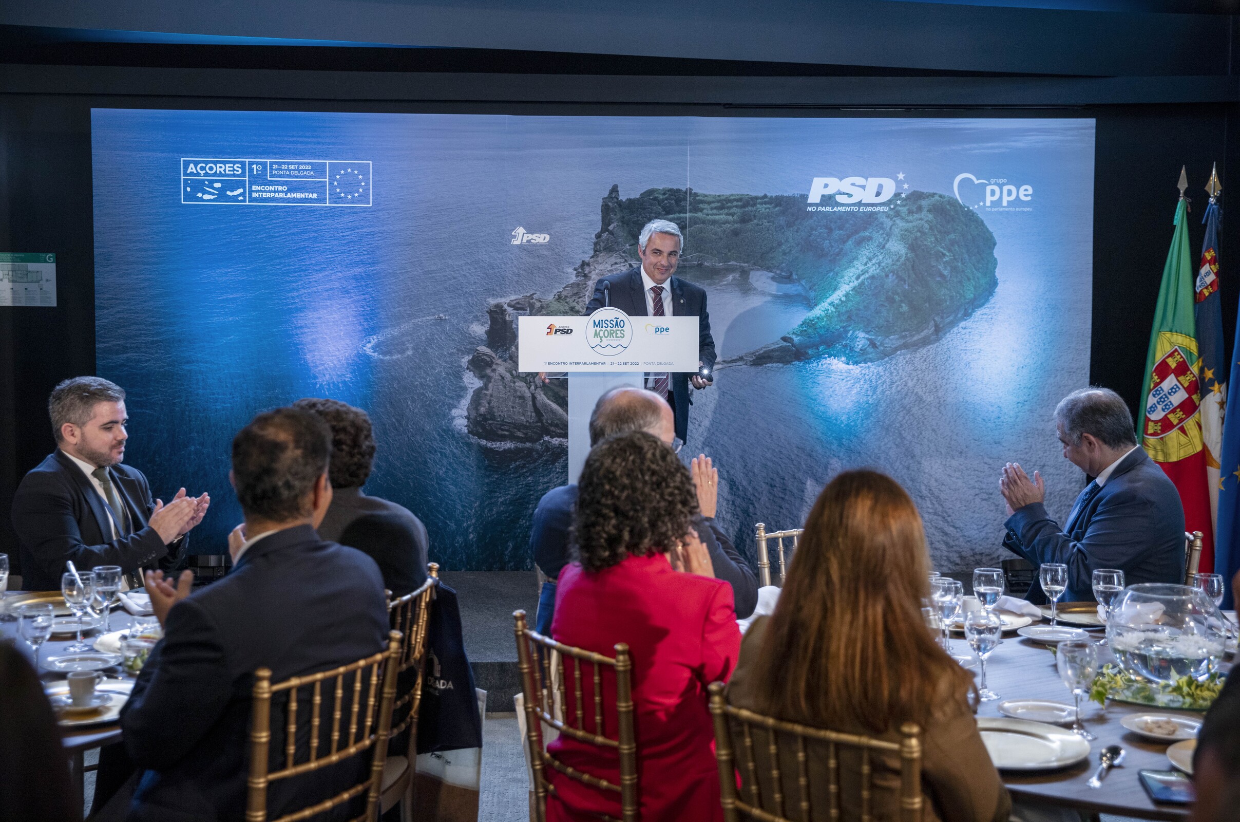 Na sessão de boas-vindas do evento estiveram também João Bruto da Costa, Presidente do Grupo Parlamentar do PSD na ALRAA, José Manuel Fernandes, Chefe da Delegação do PSD no Parlamento Europeu; e José Manuel Bolieiro, Presidente do PSD Açores e do Governo Regional dos Açores.