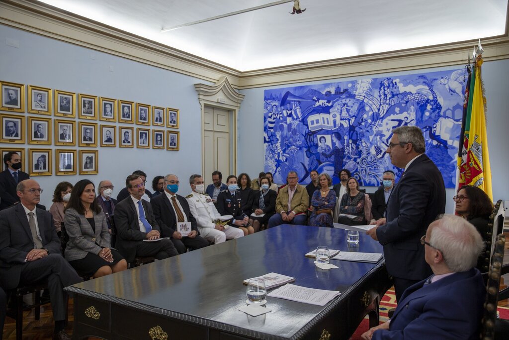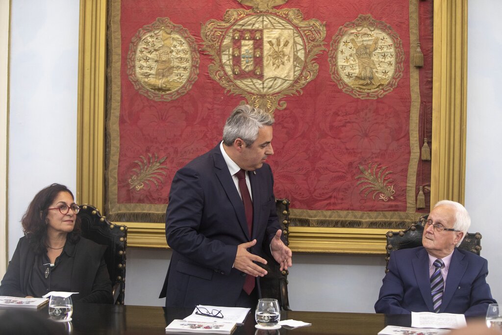 Pedro Nascimento Cabral felicitou os autores dos desenhos; a coordenadora, Alexandra Baptista; a autora dos textos, Maria João Ruivo; a responsável pela tradução para inglês, Iracema Cordeiro; e os demais colaboradores.