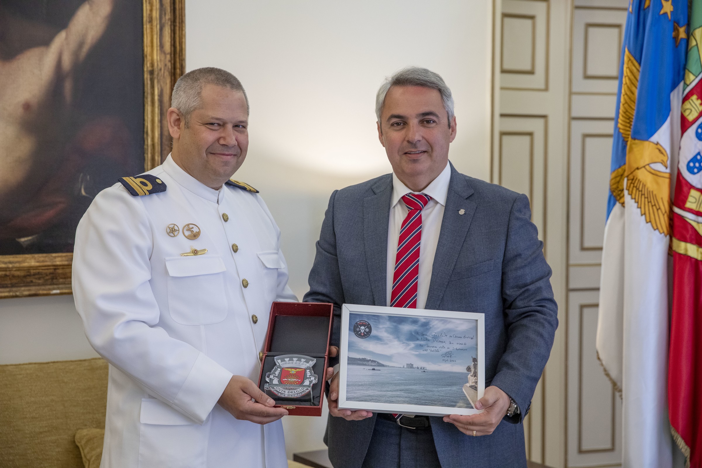 O Presidente da Câmara Municipal de Ponta Delgada, Pedro Nascimento Cabral, recebeu, esta segunda-feira, em audiência de cumprimentos, o Capitão-Tenente Taveira Pinto, em comissão nas ilhas açorianas como Comandante do submarino NRP “Arpão”.