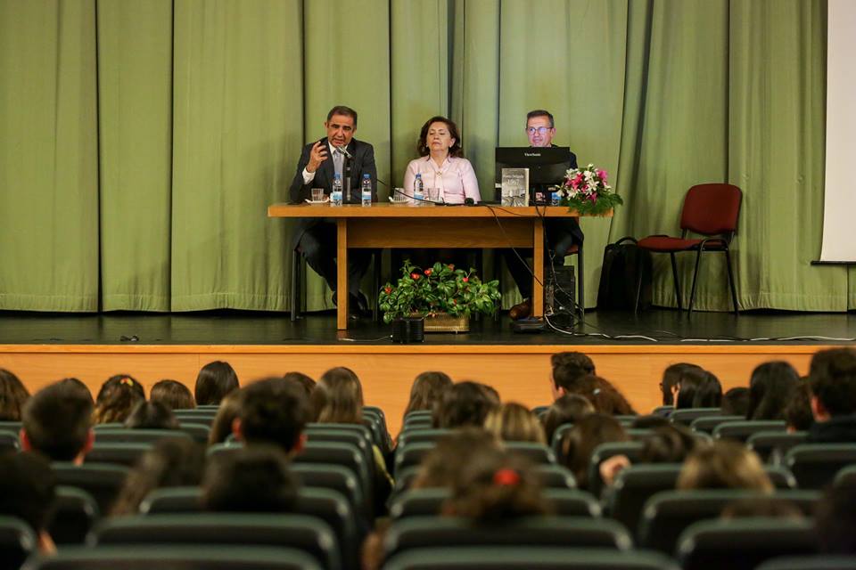 Dirigiu uma palavra de apreço à presidente da Escola Secundária Domingos Rebelo, Helena Lourenço, e ao autor Joaquim Machado.