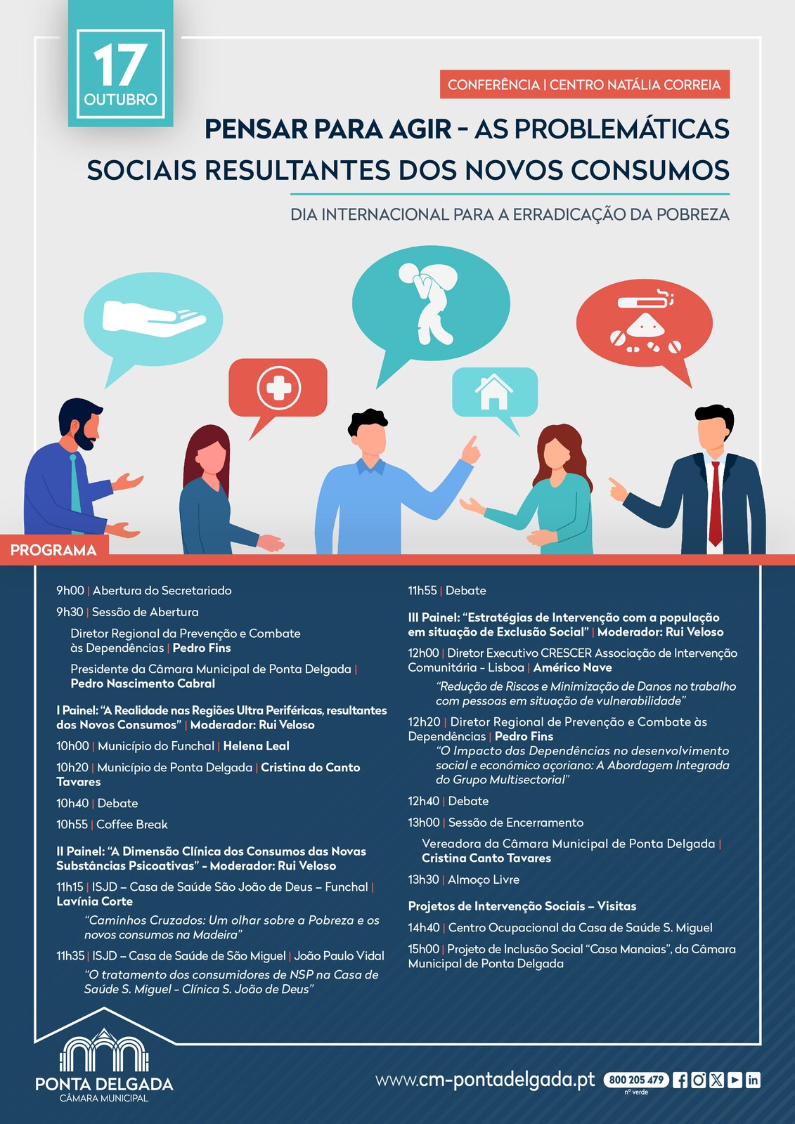 A Câmara Municipal de Ponta Delgada, como forma de assinalar o Dia Internacional para a Erradicação da Pobreza, comemorado a 17 de outubro, vai realizar a conferência "Pensar para agir - As Problemáticas Sociais Resultantes dos Novos Consumos".