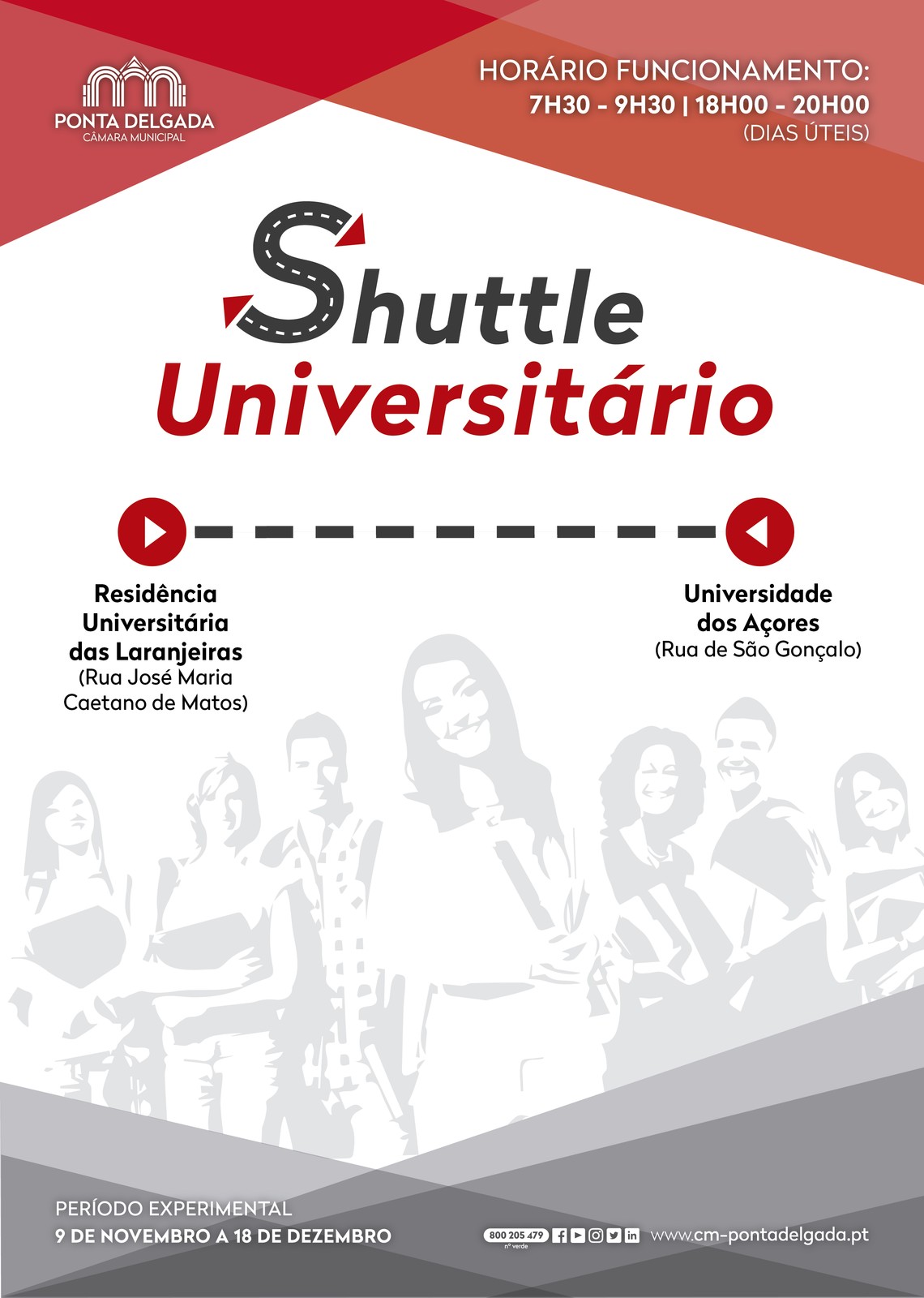 O Município de Ponta Delgada vai avançar com o serviço “Shuttle Universitário”, a título experimental, já no próximo dia 9 de novembro, concretizando, desta forma, uma recomendação do Conselho Municipal de Juventude.