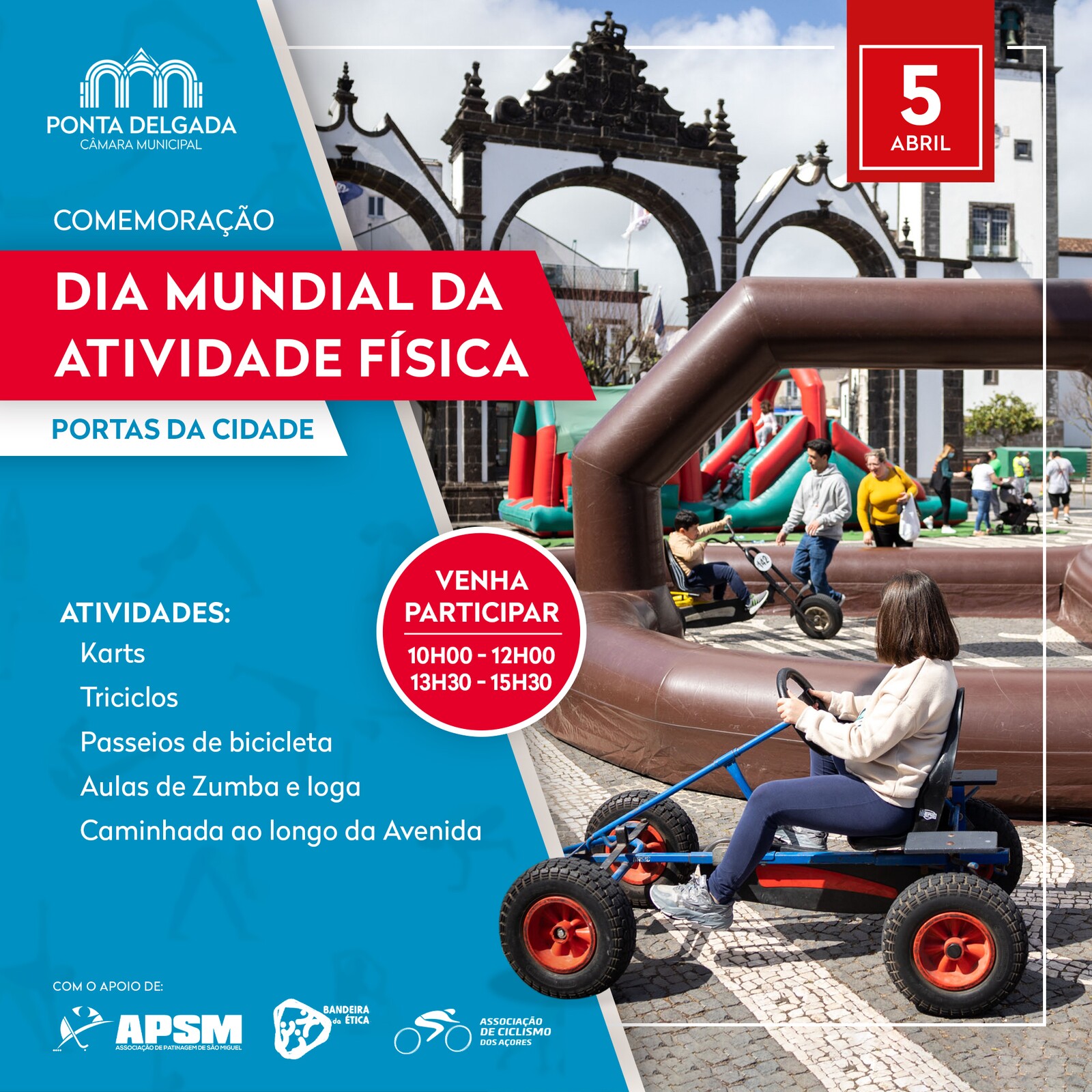 Esta é mais uma iniciativa da Câmara Municipal de Ponta Delgada, que é aberta a toda a população, e pretende não só assinalar este Dia Mundial, como também lembrar dos benefícios da atividade física para a saúde e para qualidade de vida dos munícipes.