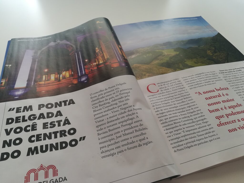 “Em Ponta Delgada você está no centro do mundo” é o título do trabalho jornalístico de quatro páginas em que o Presidente da Câmara Municipal de Ponta Delgada faz uma breve caracterização do concelho e aponta algumas estratégias para dar continuidade ao seu crescimento.