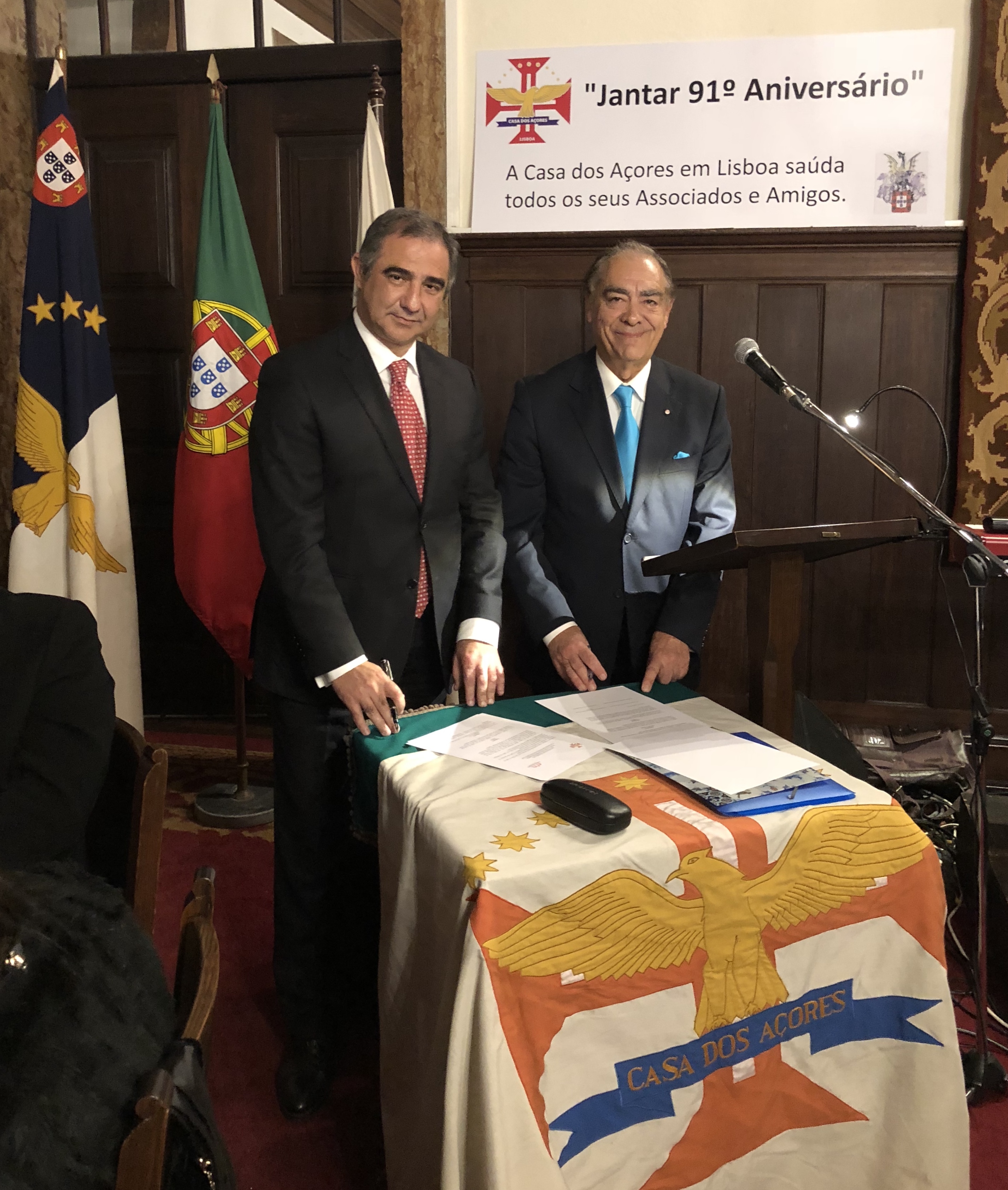 A formalização do acordo de colaboração entre as duas instituições integrou o programa oficial do jantar comemorativo dos 91 anos da Casa dos Açores em Lisboa, que reuniu mais de uma centena de açorianos no salão nobre da Sociedade Histórica da Independência de Portugal.