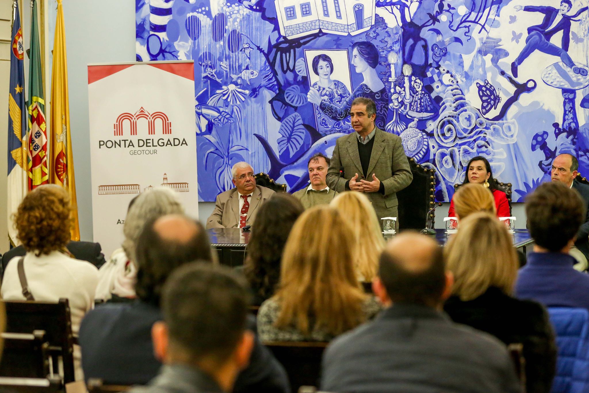 Luís Filipe Machado apresentou o site do “Ponta Delgada Geotour” (https://geotourpontadelgada.webnode.pt/), onde pode ser consultada informação sobre o concelho e sobre o roteiro de geocaching que passa entre outros, por ícones de atração turística como a Vista do Rei, Sete Cidades, Ferraria, Lagoa do Canário, Rocha da Relva, bem como por igrejas, jardins, parques, biblioteca municipal e espaços ligados à cultura do ananás, à produção de tabaco e à caça de baleia.