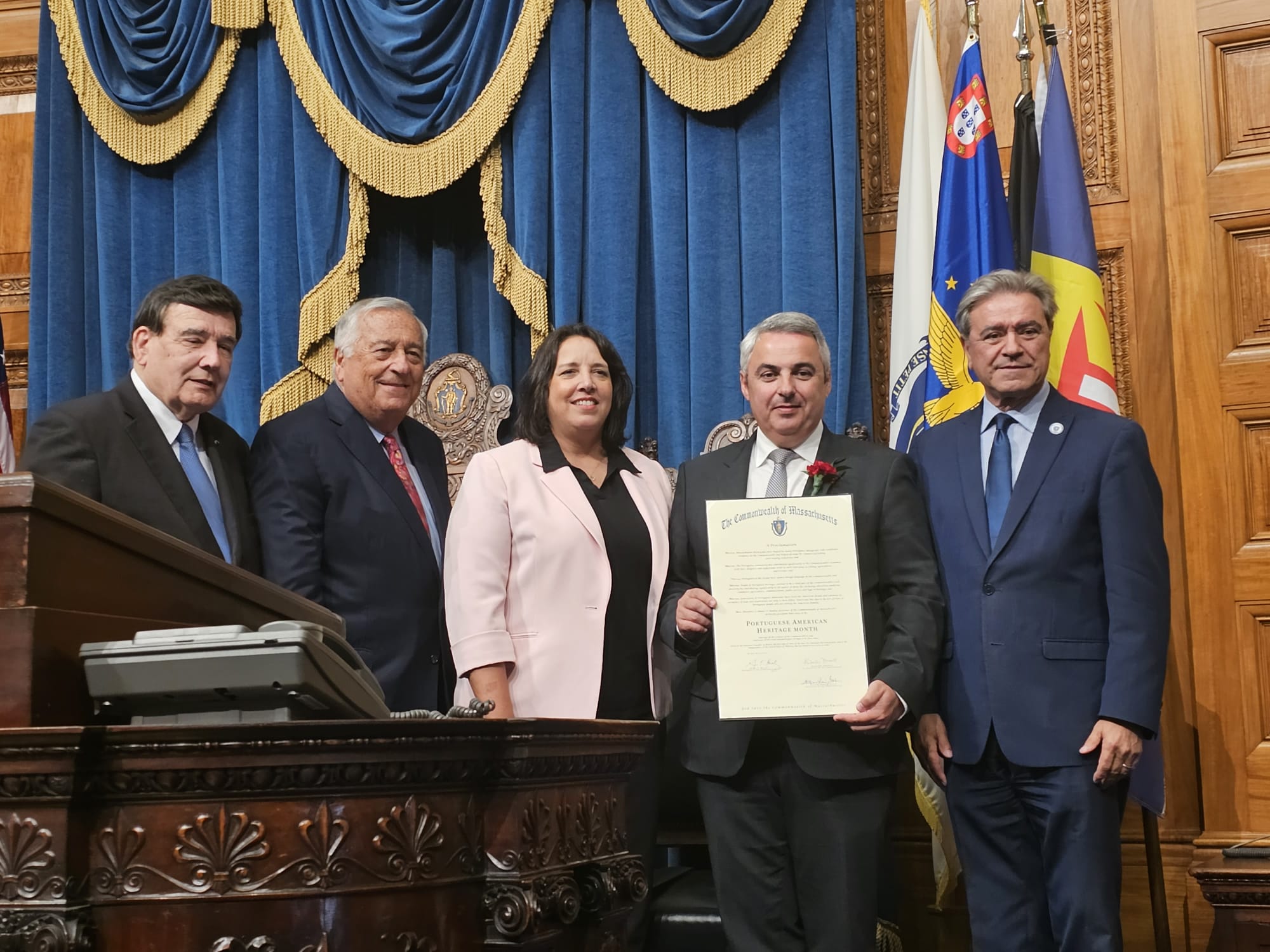 “Hoje, no Estado de Massachusetts, celebramos o feito dos nossos antepassados e a maravilhosa herança que nos deixaram. A sua coragem de deixar para traz a ilha que os viu nascer, de aguentar a dor de se separarem de pais e irmãos para rasgar um horizonte sempre igual e entrar neste grande país. A sua luta para aprender a língua, agarrar a oportunidade de um trabalho, de constituir família e ter filhos. De, com o seu sangue, suor e lágrimas, construir também esta América em que nos encontramos, sem nunca esquecer a sua origem e tradições culturais. Saibamos ter a determinação dos nossos antepassados na preservação das nossas tradições culturais que evidenciam a nossa Identidade. Temos o dever de receber essa Herança Portuguesa, de a preservar, divulgar e ampliar junto das nossas comunidades, para um dia entregá-la com muito carinho e amor aos nossos filhos. Tal como os nossos avós fizeram com os nossos pais e estes para connosco”, concluiu.