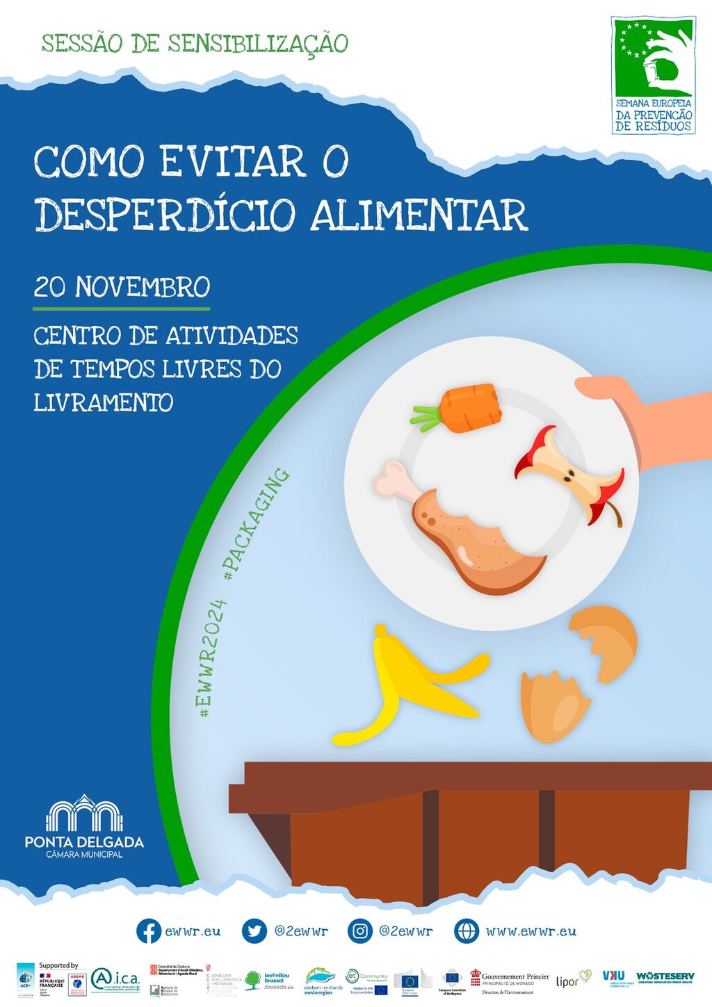 A Câmara Municipal de Ponta Delgada vai participar na 15.ª Semana dos Resíduos dos Açores, inserida na 16.ª Semana Europeia de Prevenção de Resíduos (EWWR), com a realização de três ações de educação ambiental subordinadas ao tema “O desperdício alimentar não tem paladar!".