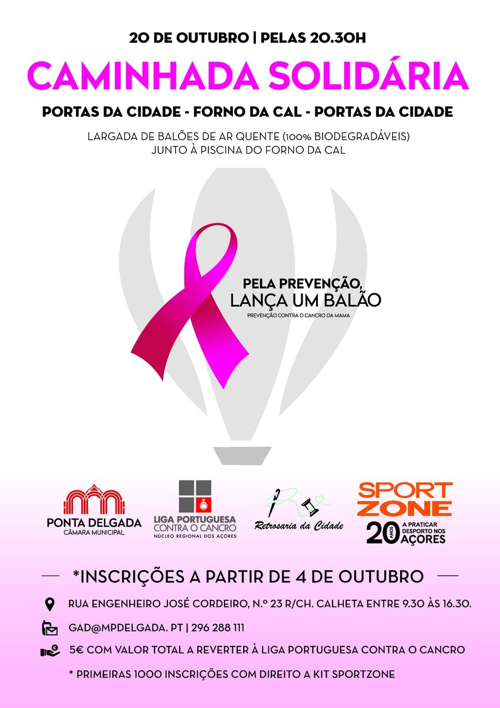 Ponta Delgada realiza Caminhada Contra o Cancro da Mama a 20 de outubro