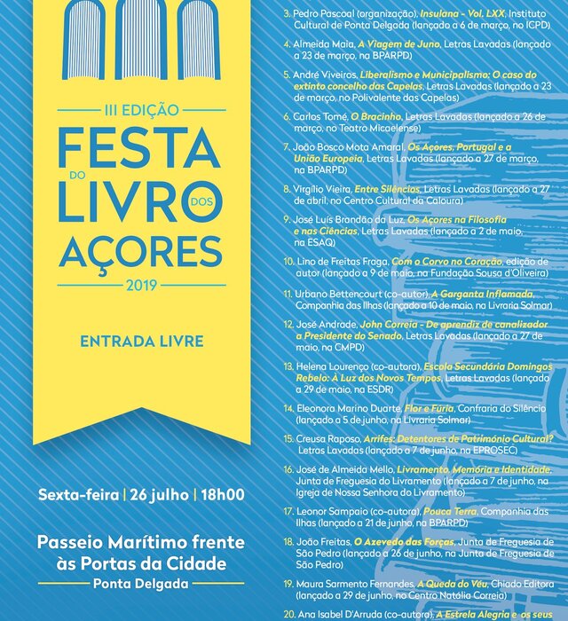 III Festa do Livro dos Açores em Ponta Delgada de 26 de julho a 4 de agosto
