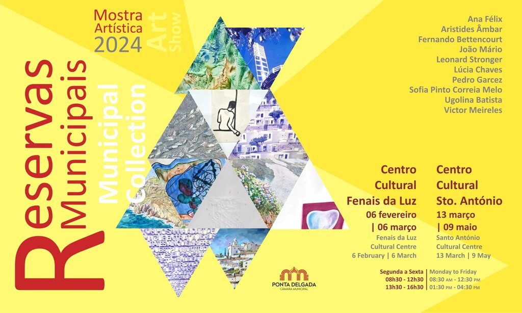 Os Centros Municipais de Cultura dos Fenais da Luz e de Santo António vão ter patente a exposição “Reservas Municipais - Mostra Artística 2024”, que reúne 12 das 650 obras de arte da coleção da Câmara Municipal de Ponta Delgada.