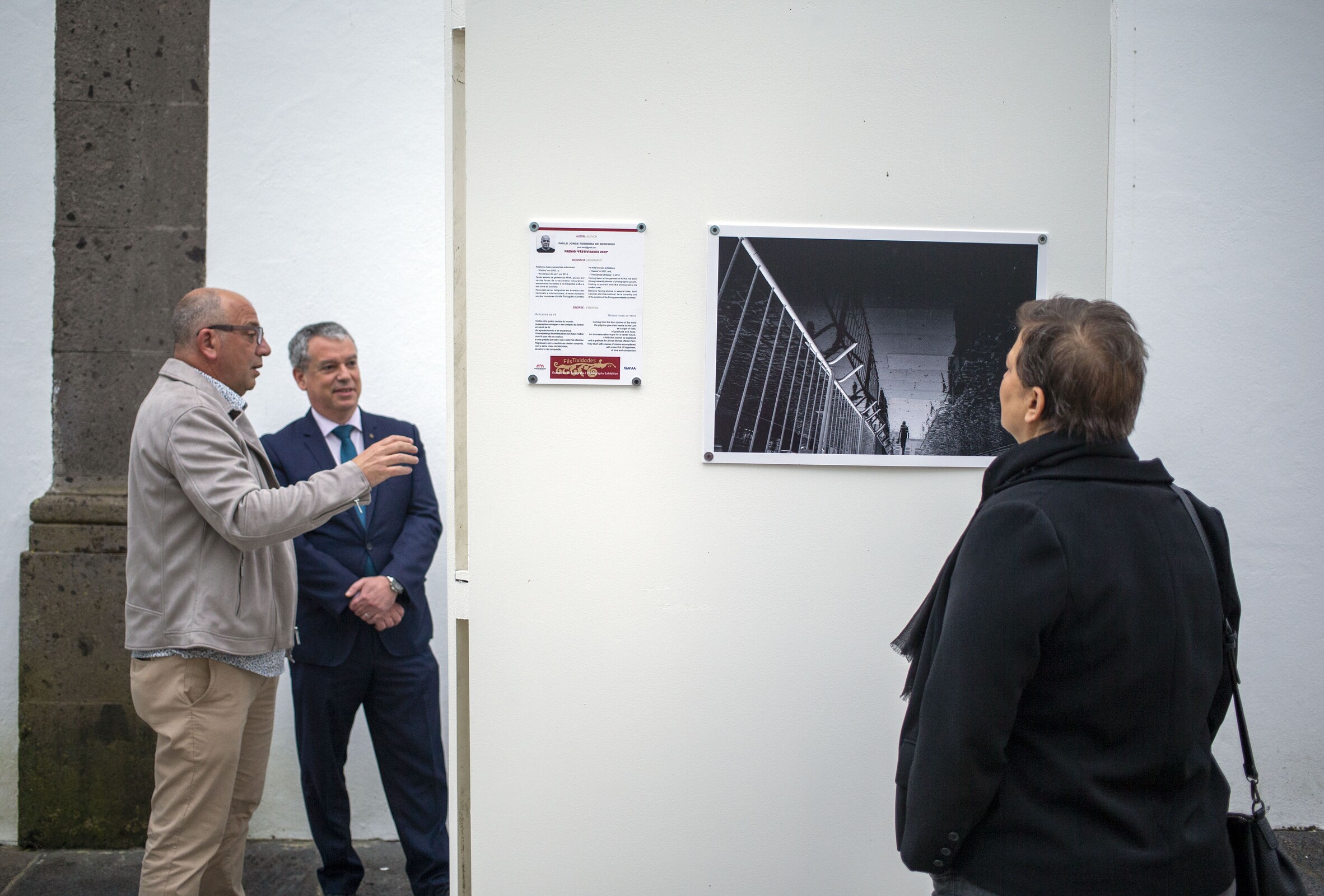 “As imagens aqui apresentadas mostram-nos diferentes essências das Festas do Senhor Santo Cristo em 2022. A chuva, o isolamento, as máscaras ainda a marcam os rostos, reportando-nos para uma fase extremamente difícil da Humanidade, marcada já pelo período de saída das restrições COVID-19 e consequente esperança, do regresso à normalidade. O íntimo de cada um de nós, perante a crise que vivíamos, influenciou as Festas em Honra do Senhor Santo Cristo dos Milagres, deixando um registo muito bem captado na exposição da AFAA”, afirmou Sérgio Rezendes, Vereador responsável pelo pelouro da cultura.