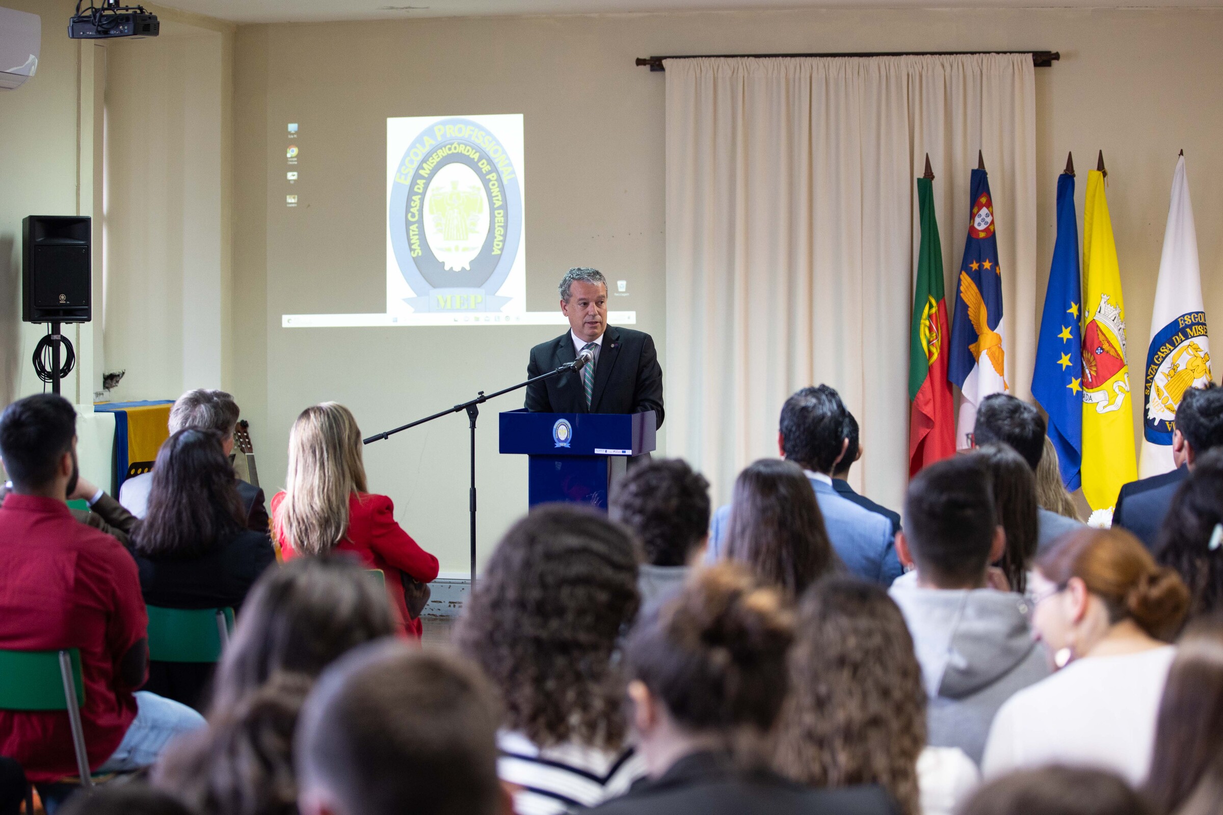 O autarca falava na cerimónia de entrega de diplomas aos formandos da MEP – Escola Profissional da Santa Casa da Misericórdia de Ponta Delgada que terminaram os seus cursos no ano letivo de 2020 / 2021.