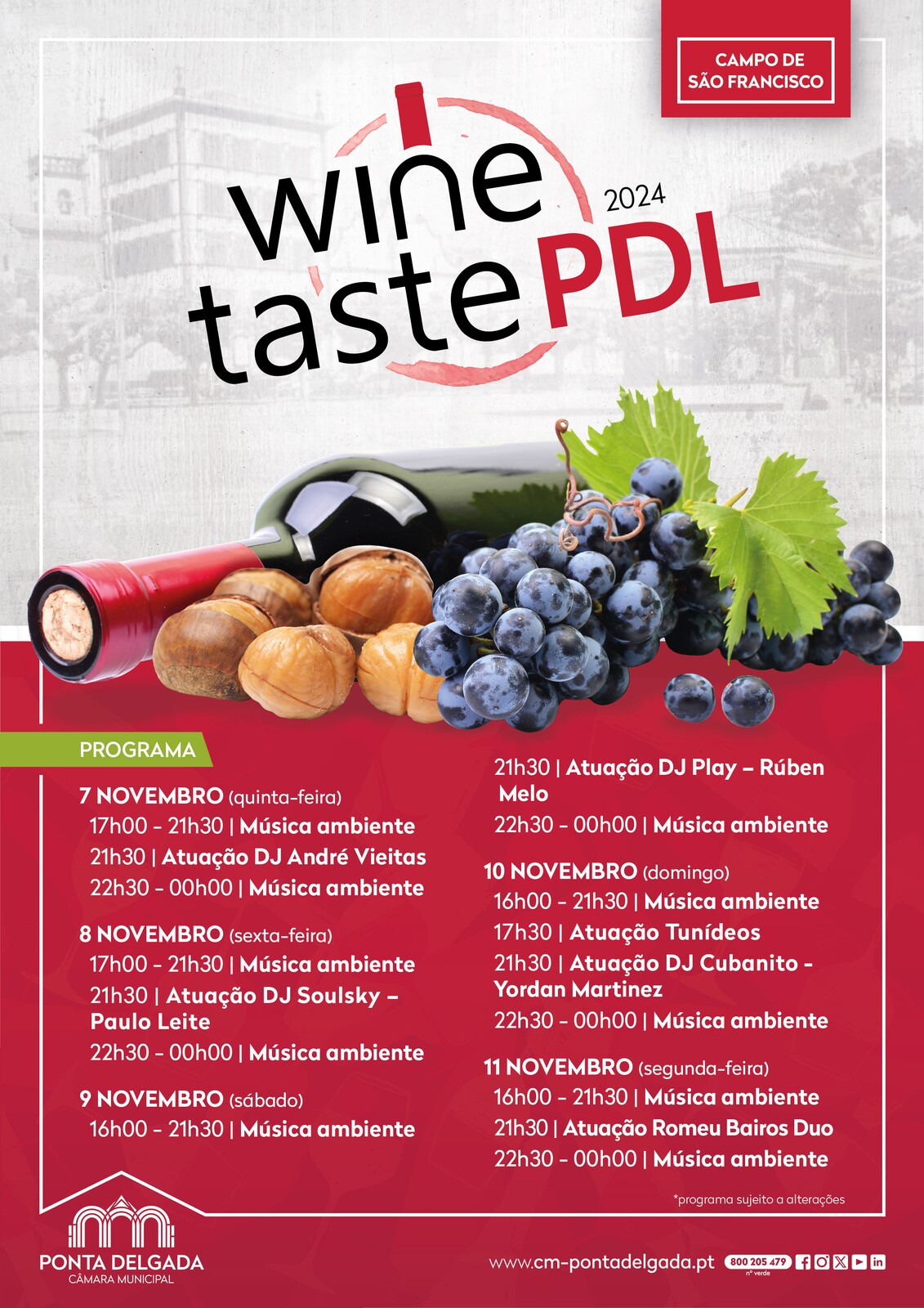 O Wine Taste PDL vai decorrer de 7 a 11 de novembro no Campo de São Francisco para celebrar, neste emblemático espaço da cidade de Ponta Delgada, o tradicional São Martinho.